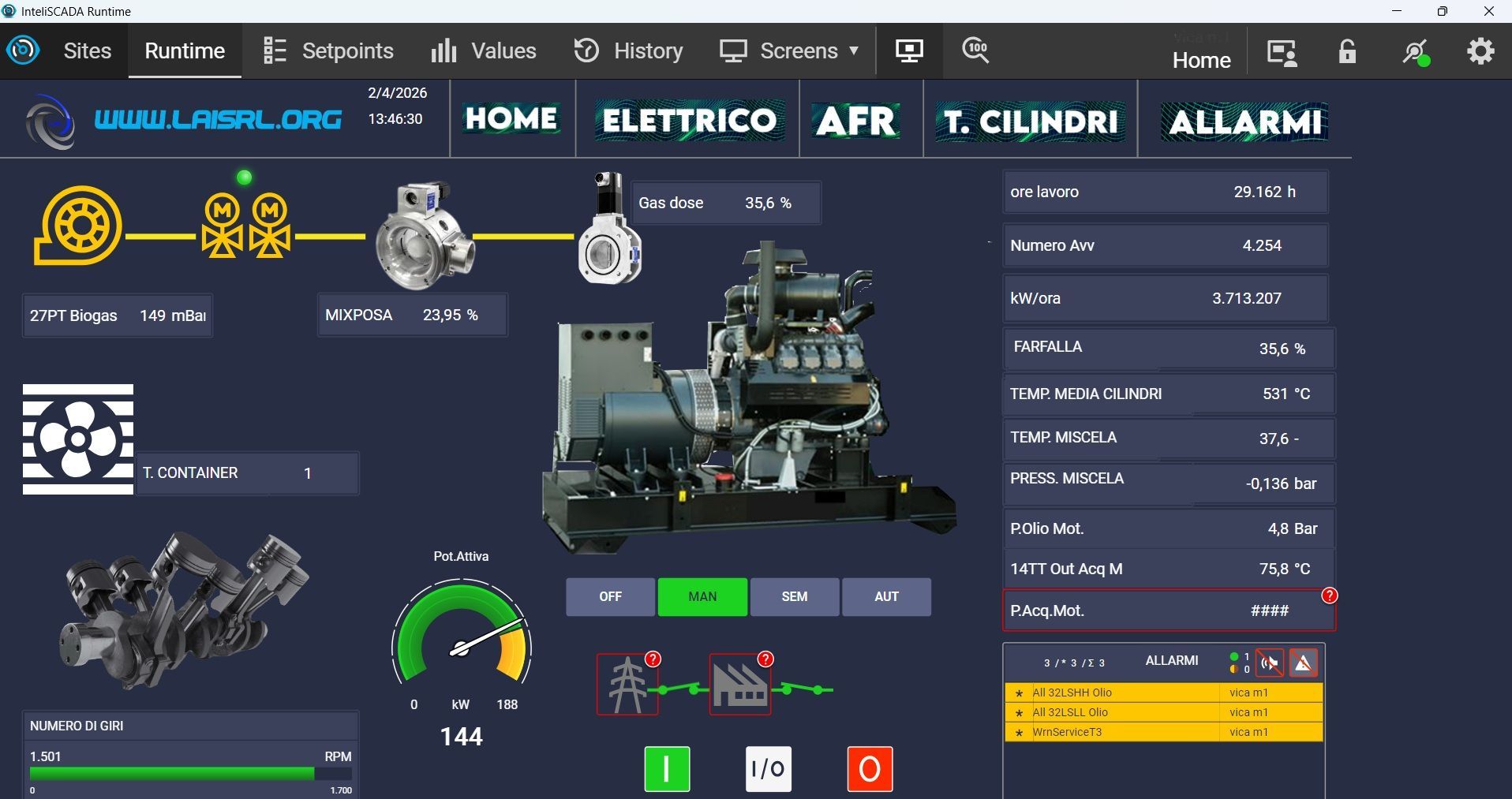 revamping volti a modernizzare l'esistente. Il nostro reparto tecnico interno cura ogni fase dell’automazione: dalla programmazione avanzata dei PLC alla gestione intelligente di torce, postcombustori e sistemi di filtrazione. Garantiamo un controllo totale e ottimizzato del cogeneratore e di tutti i suoi ausiliari, trasformando la complessità tecnica in efficienza operativa.